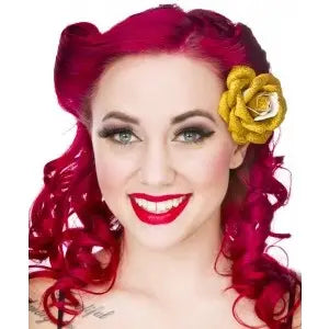 Add a pop of sparkle to your hairstyle with the Sourpuss Glitter Rose Hair Clip!