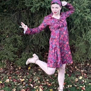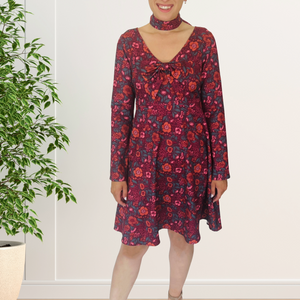 This knee-length stunner boasts bell sleeves and a sexy V-neck, capturing the essence of 1960s fashion. To complete the look, we've even included a matching scarf for your hair, providing you with endless styling possibilities.