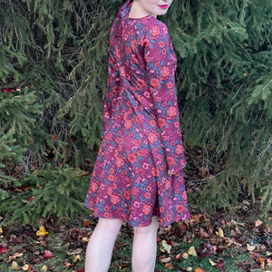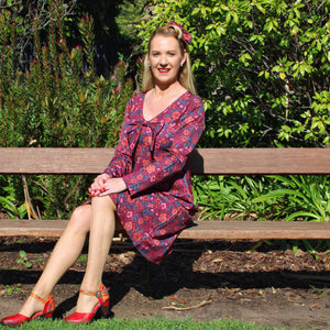 The flattering A-line cut ensures this dress looks fabulous on every body type, embracing the timeless appeal of the era. What makes it even more special? Our in-house design team crafted this unique floral pattern, guaranteeing a one-of-a-kind fashion statement. Step into the past with a dash of modern flair – shop the Moxie Shift dress now and let your inner mod shine!"