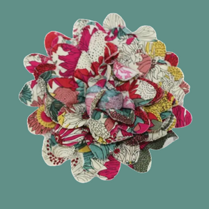 A subtle statement with vintage soul. This flat-profile flower pin is made from soft cotton blend fabric in charming floral prints. With its sleek, layered petals and slim silhouette, it adds just the right touch of retro romance—without the bulk.