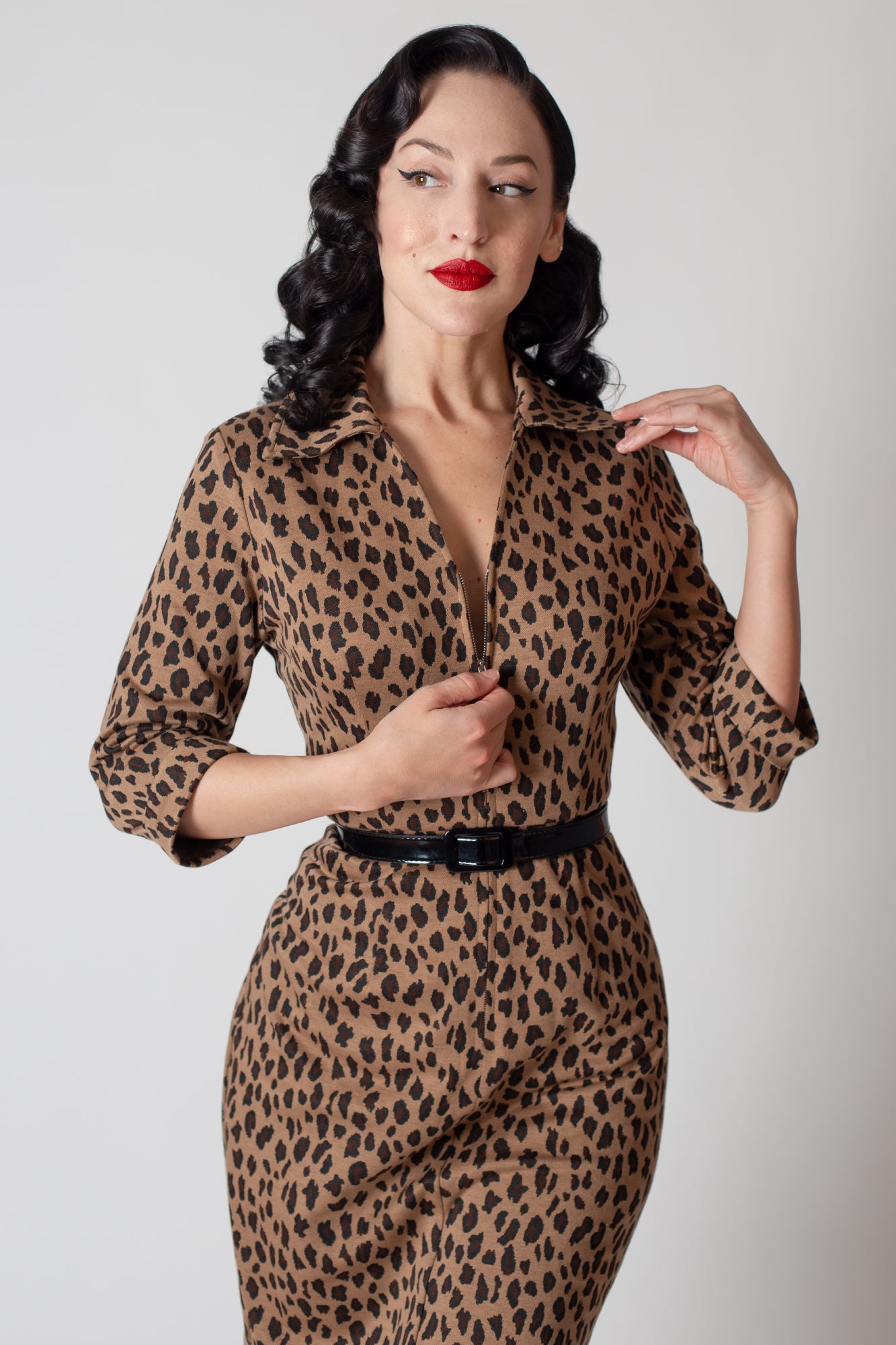 Our wiggle patina has retro front zip that lets you decide how low you want to go with the neckline.