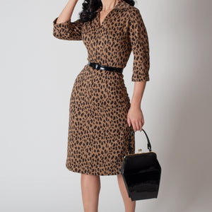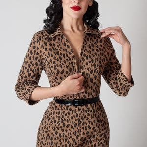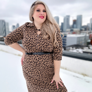 Roar!! We’re back in a leopard print, mixing browns, tans, and black in a comfy stretch knit to create limitless styling capabilities.
