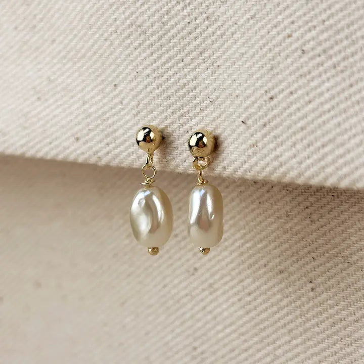Timeless glamour meets everyday elegance in these handcrafted 18k gold-filled earrings, featuring a classic ball stud and a luminous simulated baroque pearl drop. Lightweight and refined, they’re the perfect finishing touch for both casual and formal looks. Water-resistant and hypoallergenic, these Brazilian-made beauties bring sophistication without compromise.